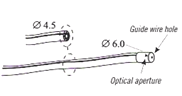 Can be inserted through the biopsy channel of an endoscope. Reads perpendicularly.