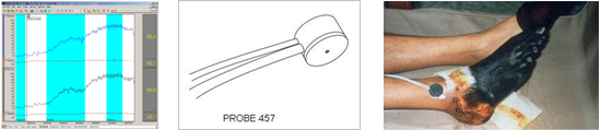 A combined laser Doppler and thermostatic probe used for local heat provocation while blood perfusion is measured. Double-sided adhesive rings (PF 105-2) are used for fixation. The probe is water-resistant. Similar to PROBE 457 (357) but intended for use on larger areas, e.g. dorsum of foot or forearm. Fibre separation 0.25 mm.