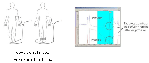 The Laser Doppler in combination with the PF5050 Pressure Unit make vascular tests like Toe Pressure (Digital Systolic Blood Pressure), Skin Perfusion Pressure, Post Occlusive Reactive Hyperemia (PORH) and Pulse Volume Recording - PVR (Air Plethysmography) more accurate and reliable.